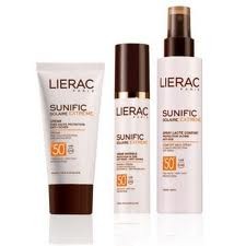 Na Lierac: Sunific Solaire Extreme SPF 50 & Anti-Age - Crème Invisible Protectition Ultime anti rides - Anti-taches; Crème Très haute Protectio Anti Taches e spary Lactée Confort Protection Ultime Anti-age.