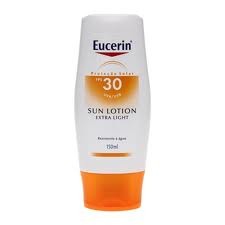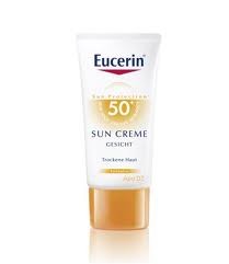 Na Eucerin: Creme Solar Rosto FP50+, indicado para pele seca e Loção Solar Extra Light FP 30 ou 50.
